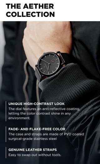 Aether | Black & Silver-Tone Stainless Steel Minimalist Watch With Azure Blue Detail
