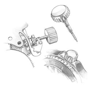 Purely automatic watches are rare, but they do exist. These cannot be wound by rotating the crown but only by applying movement to the watch itself. Behind the caseback is a half-moon-shaped oscillating weight. This rotor weight winds the watch as you move your arm, swinging internally as you swing your arm. The idea is that if you wear the automatic watch every day, it builds up enough power to last through the night, so it shouldn’t ever stop. Put it on the next morning and head to work, and you’ll generate enough power to run the watch continuously and top it up for the next night. If it does stop, however, you may have to shake it a bit before it gets going. Don’t be too rough, though. The springs and gears really don’t like that.