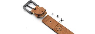 For men’s elastic belts, we give you an approximate length because they obviously have some give to them. As an alternative, you can alter the size of your belt by cutting off a section as shown in the image. All you need is a knife sharp enough to cut through leather and a strong multi-hole puncher.