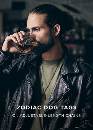Zodiac | Silver-Tone Stainless Steel Leo Star Sign Dog Tag Cable Chain Necklace