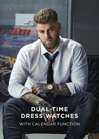 Ternion | Black Dual-Time Watch With Black Dial & Rust Leather Strap