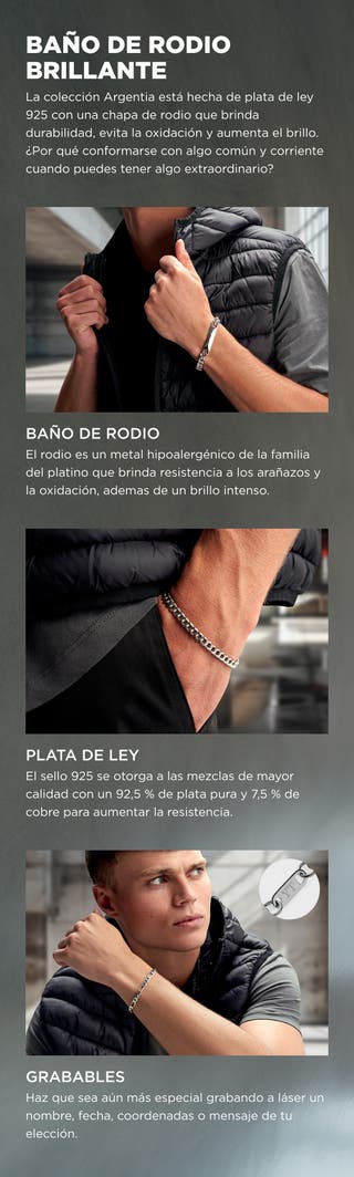 Argentia | 925s | Pulsera de cadena barbada de plata de ley chapada en rodio de 4 mm