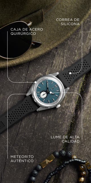 Mond | Reloj de meteorito de acero inoxidable plateado y azul