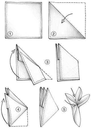 This is simply a sleek, striking fold. Use a stiffer fabric in a solid color or one with an interesting print.