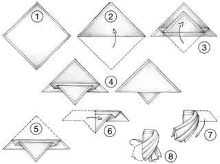 This intricate fold is perfect for the dapper gentleman. It’s anything but plain and you’ll stand out in the crowd while sporting it. This one works best with lightweight fabrics such as silk.