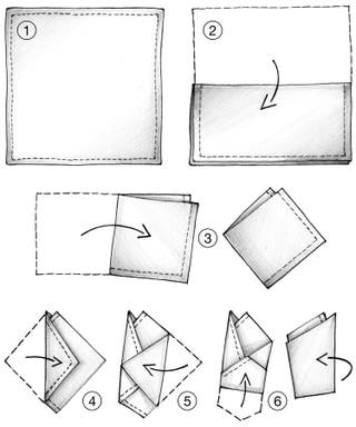 - Turn the pocket square so that both tips are facing up. Fold in the left side.