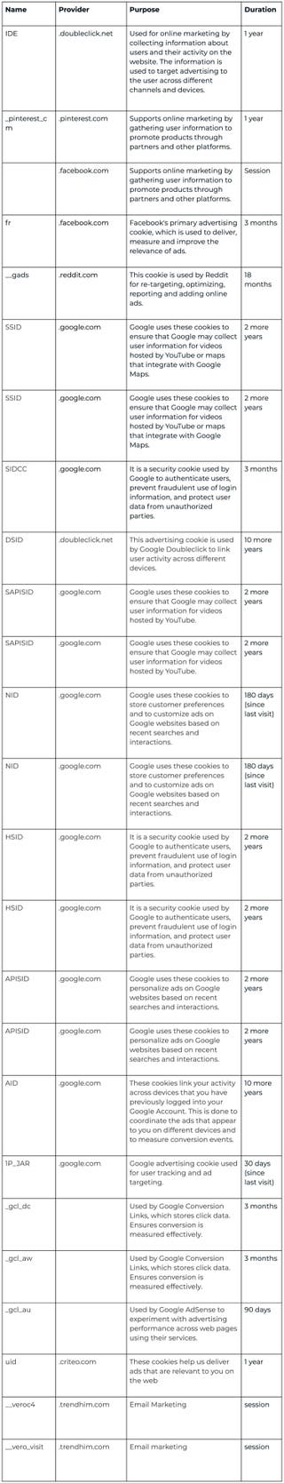 If you have any questions regarding this cookie policy, you may contact us at info@trendhim.dk